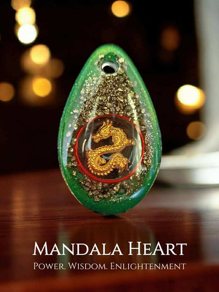 Materials: Gold-Plated 925 Silver Dragon, Tibetan Mineral Pigments, Pyrite